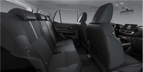 Hàng ghế sau rộng rãi, tựa đầu tùy chỉnh. Chất liệu ghế da pha nỉ mang đến cảm giác hiện đại.