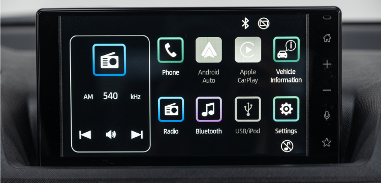 Màn hình giải trí trung tâm cảm ứng kết nối điện thoại thông minh cùng hệ thống 6 loa hiện đại ứng dụng công nghệ trợ sáng giúp thao tác dễ dàng khi di chuyển trong buổi tối.