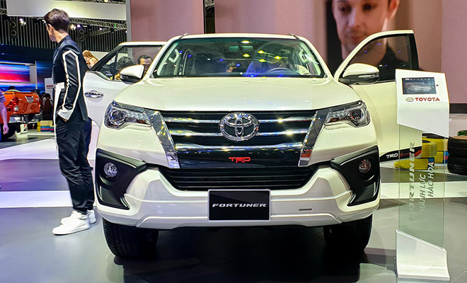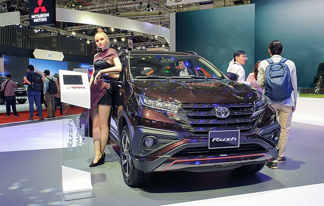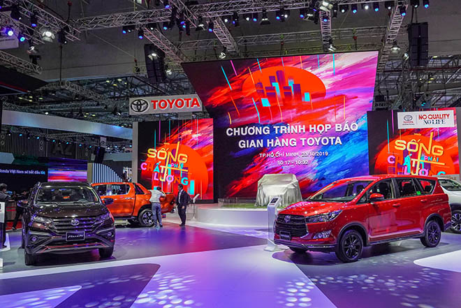 Gian trưng bày của Toyota Việt Nam còn có sự xuất hiện của những mẫu xe luôn được yêu thích trên thị trường Việt Nam như phân khúc xe 7 chỗ với Fortuner, Innova, Rush, phân khúc bán tải với Hilux và phân khúc xe 4 chỗ với Camry, Vios.