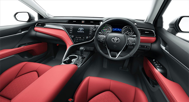 Tông màu chủ đạo cho khoang nội thất của Camry phiên bản kỷ niệm 40 năm này là đỏ hoặc đen. Chất liệu da được sử dụng ở những vị trí như ghế ngồi, bệ cửa, khu vực táp-lô... Ghế ngồi phía trước chỉnh điện và tích hợp chức năng sưởi.