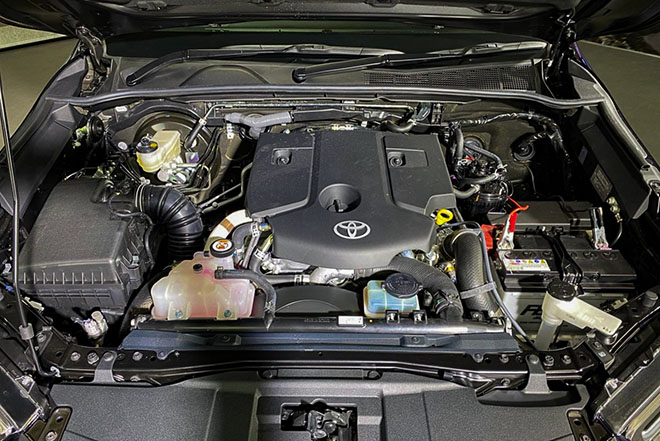 Những bản còn lại với dung tích động cơ nhỏ hơn 2GD-FTV 2.4L sẽ cho công suất khiêm tốn hơn đôi chút. tương ứng 150 mã lực tại 3.400 vòng/phút và 400 Nm tại 1.600-2.000 vòng/phút. Cả phiên bản Single Cab 2.4 MT 4×4 lẫn Double Cab 2.4G MT 4×4 đi cùng hộp số sàn 6 cấp. Những bản còn lại đều sở hữu hộp số tự động 6 cấp và hệ dẫn động 4 bánh tiêu chuẩn.