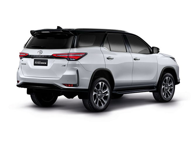 Fortuner 2021 được trang bị bộ mâm 20 inch 2 tông màu dành riêng cho bản Legender. Đuôi xe vẫn giữ thiết kế tổng thể, nhưng có đèn hậu tái thiết kế, lấy cảm hứng từ mẫu sedan Toyota Camry. Hai khe gió giả đặt ở phía sau.